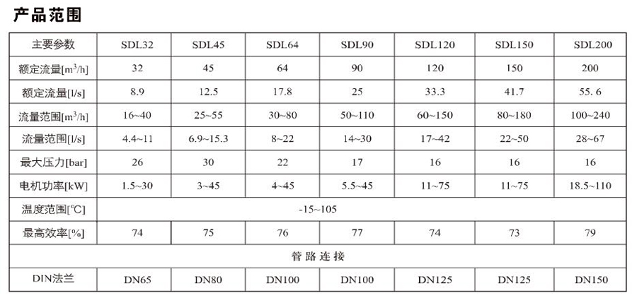 SDL90/SDLT90是一種多功能產(chǎn)品,可以輸送從自來水到工業(yè)液體的各種不同介質(zhì),適用于不同溫度、流量和壓力范圍。