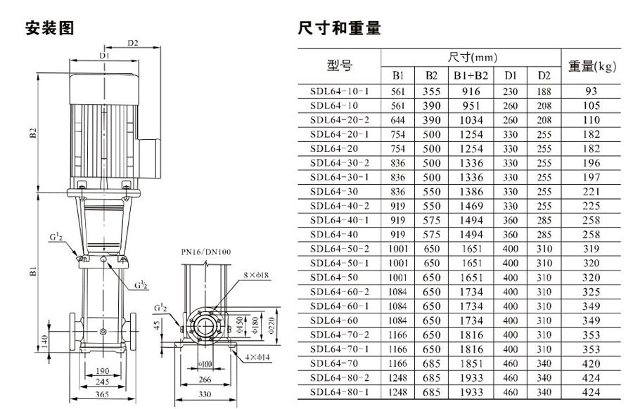 SDL64/SDLT64為配用標(biāo)準(zhǔn)電機(jī)的非自吸立式多級離心泵,電機(jī)軸和泵軸用聯(lián)軸器直接聯(lián)接,把拉桿用螺母將外筒,過流部件固定在支架和進(jìn)出水體之間,泵進(jìn)出水口在泵底部的同一直線上。泵可根據(jù)需要配置智能保護(hù)器,對泵的干轉(zhuǎn)、缺相、過載等進(jìn)行有效的保護(hù)。